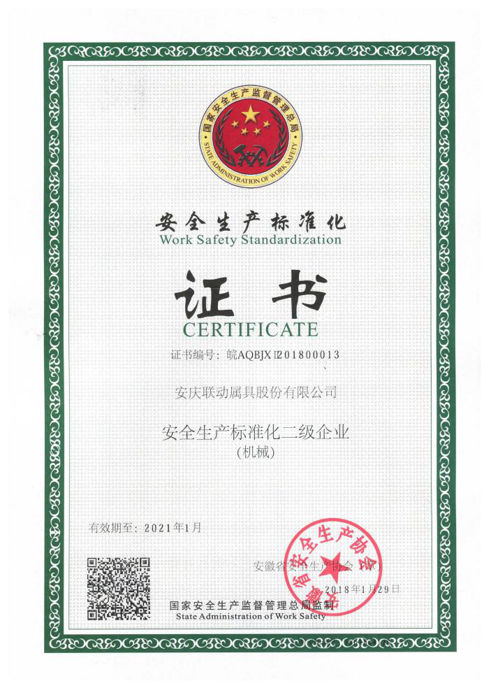 國(guó)家安全生產(chǎn)標(biāo)準(zhǔn)化二級(jí)企業(yè)