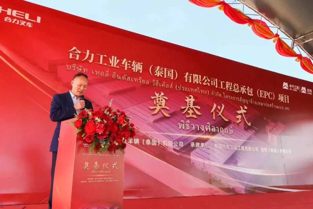 陳先友在致辭中首先代表公司向蒞臨本次儀式的泰國政府官員、各界朋友及合作伙伴表示熱烈的歡迎和感謝。他表示:“合力作為中國工業(yè)車輛行業(yè)的領軍者,始終以開放的姿態(tài)擁抱世界,將國際化視為品牌征途的星辰大海。今天,我們與SMG公司強強聯(lián)手,在泰國春武里這片熱土上投資建廠,正是積極響應‘一帶一路’倡議,深度融入全球產業(yè)鏈的關鍵落子。這不僅是合力全球化戰(zhàn)略的深化,更是中泰兩國在高端制造業(yè)領域優(yōu)勢互補、合作共贏的生動實踐。它將有力推動合力海外生產供應體系的建設,深化中泰兩國在高端制造業(yè)的融合,為合力未來的科技創(chuàng)新與市場開拓,奠定堅實而廣闊的基礎?!?/p>